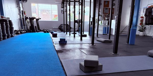 This gym is designed for lifting, so it's not your traditional open-space yoga studio. This is considered during class planning, Yogis are arranged to avoid the racks and classes are kept slow. Also, gym equipment is used throughout our sessions. Adding light weights to your Yoga practice is beneficial and the racks are handy when it's time to balance.